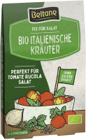 ZutatenSteinsalz, Basilikum*, Maisstärke*, Zwiebeln*, Karotten*, Tomaten*, Petersilie*, Schnittlauch*, Rosmarin*, Sonnenblumenöl*, Oregano*, Pfeffer*, Knoblauch*, Estragon*, Zitronenöl* Legende * *aus kontrolliert ökologischer Erzeugung |