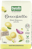 Die Byodo Orechiette, semola aus 100% biologischem Hartweizengrieß sind mit ihrem perfekten "al-dente"-Biss ein herrlicher Genuss. Dank der typischen angerauten Oberfläche nehmen sie Saucen besonders gut auf. Tradintionell werden Orechiette zu Gemüsesaucen aller Art gereicht.Die Byodo Orechiette, semola aus 100% biologischem Hartweizengrieß sind mit ihrem perfekten "al-dente"-Biss ein herrlicher Genuss. Dank der typischen angerauten Oberfläche nehmen sie Saucen besonders gut auf. Tradintionell werden Orechiette zu Gemüsesaucen aller Art gereicht.
