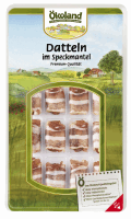 Die fruchtig-süßen Datteln "Deglet Nour" aus dem Norden Afrikas harmonieren wunderbar mit dem herzhaften Speckmantel. Der "Ökoland Bacon Premium-Qualität" für den Speckmantel wird über 2 Monate im handwerklichen Naturreifeverfahren ohne Nitritpökelsalz gereift und anschließend schonend geräuchert. So entwickelt er seinen unverfälschten Geschmack und ist besonders zum Erhitzen geeignet. Nur magerer Bioland-Schweinebauch aus Deutschland wird hierfür verarbeitet, alles unter strengen Qualitätskontrollen. Von Natur aus glutenfrei, laktosefrei, natürliche Hefenbildung durch Fermentation.